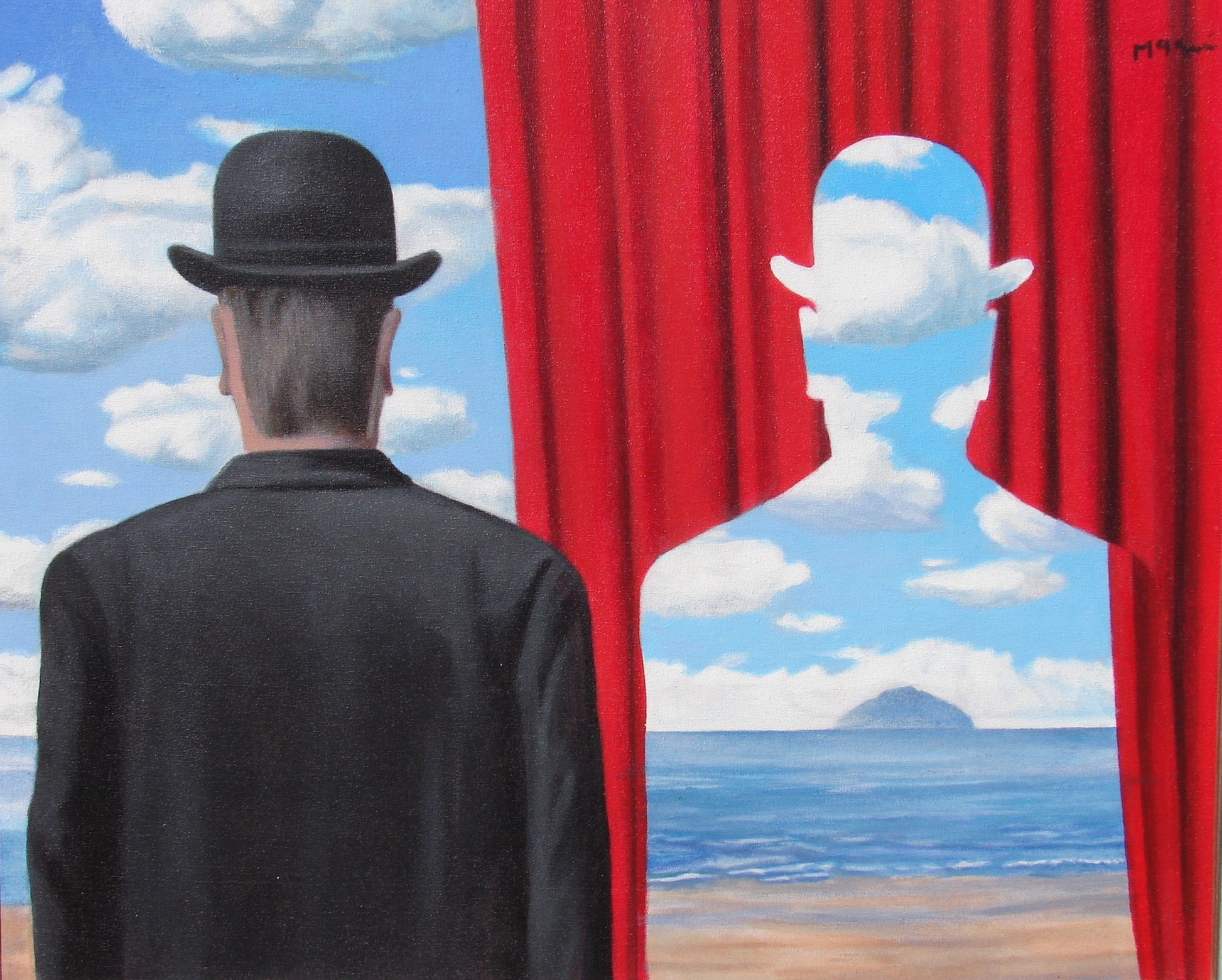 Print by local artist Roddy McKenzie "Ailsamania" (after Magritte).